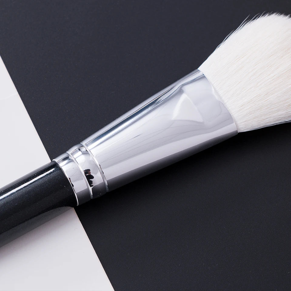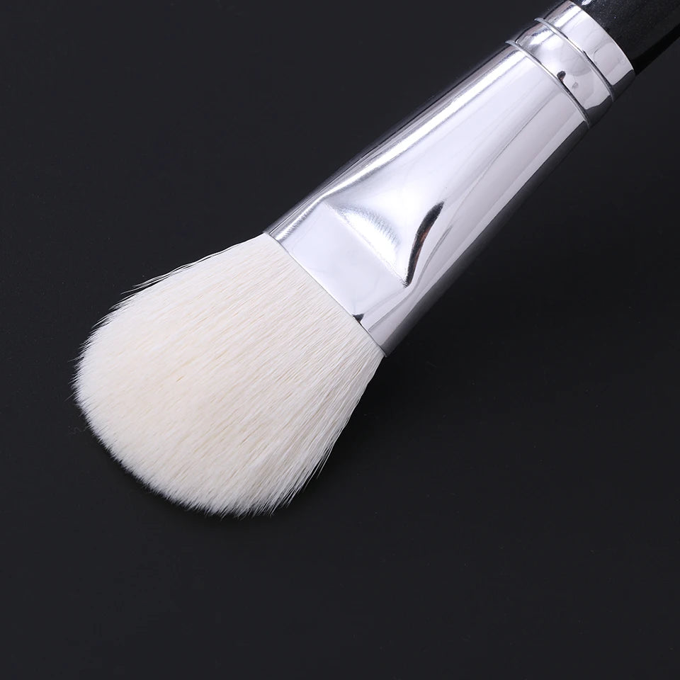 Eleva tu rutina de maquillaje con este pincel profesional de alta calidad diseñado para aplicación perfecta de colorete, polvos sueltos y contorno. Su cabezal redondeado y fibras sintéticas nano garantizan un acabado natural y profesional.