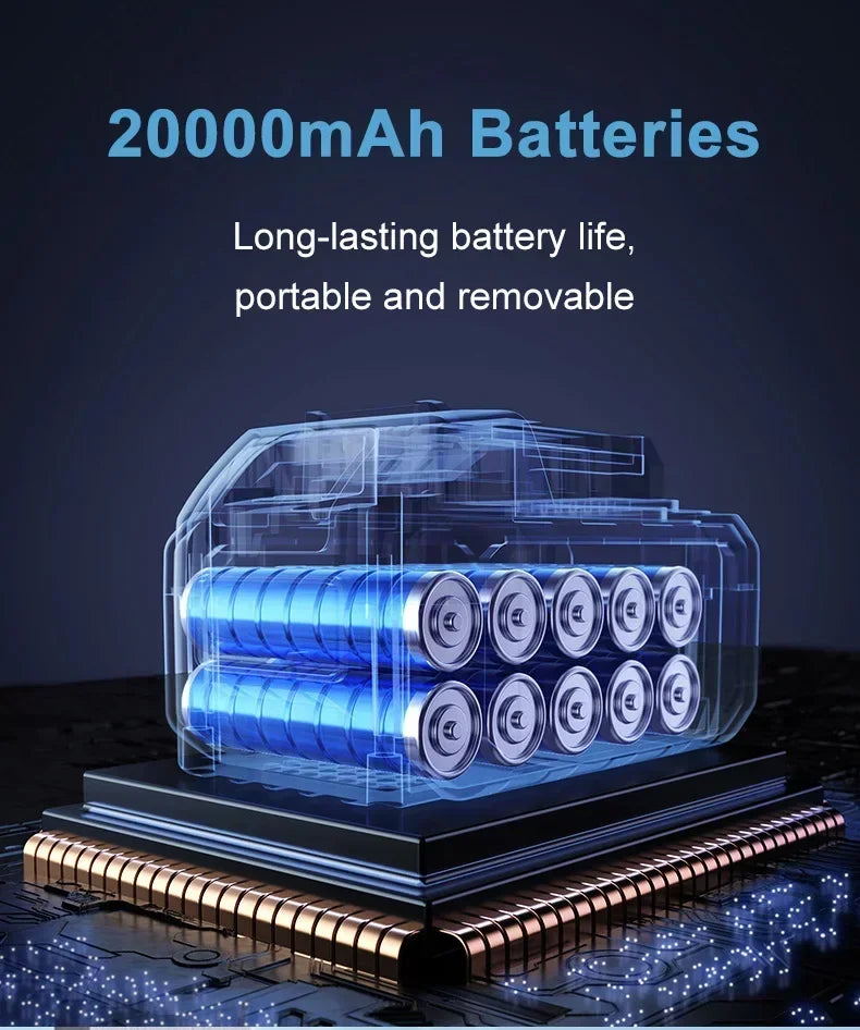 - Potencia: Batería recargable de 20.000 mAh (incluida)