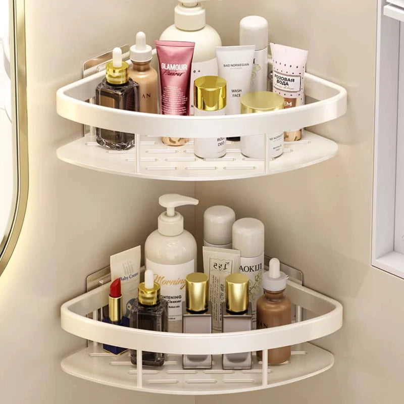 🛁 Estante Esquinera Blanca de Baño sin Perforación – Organizador Triangular de Pared