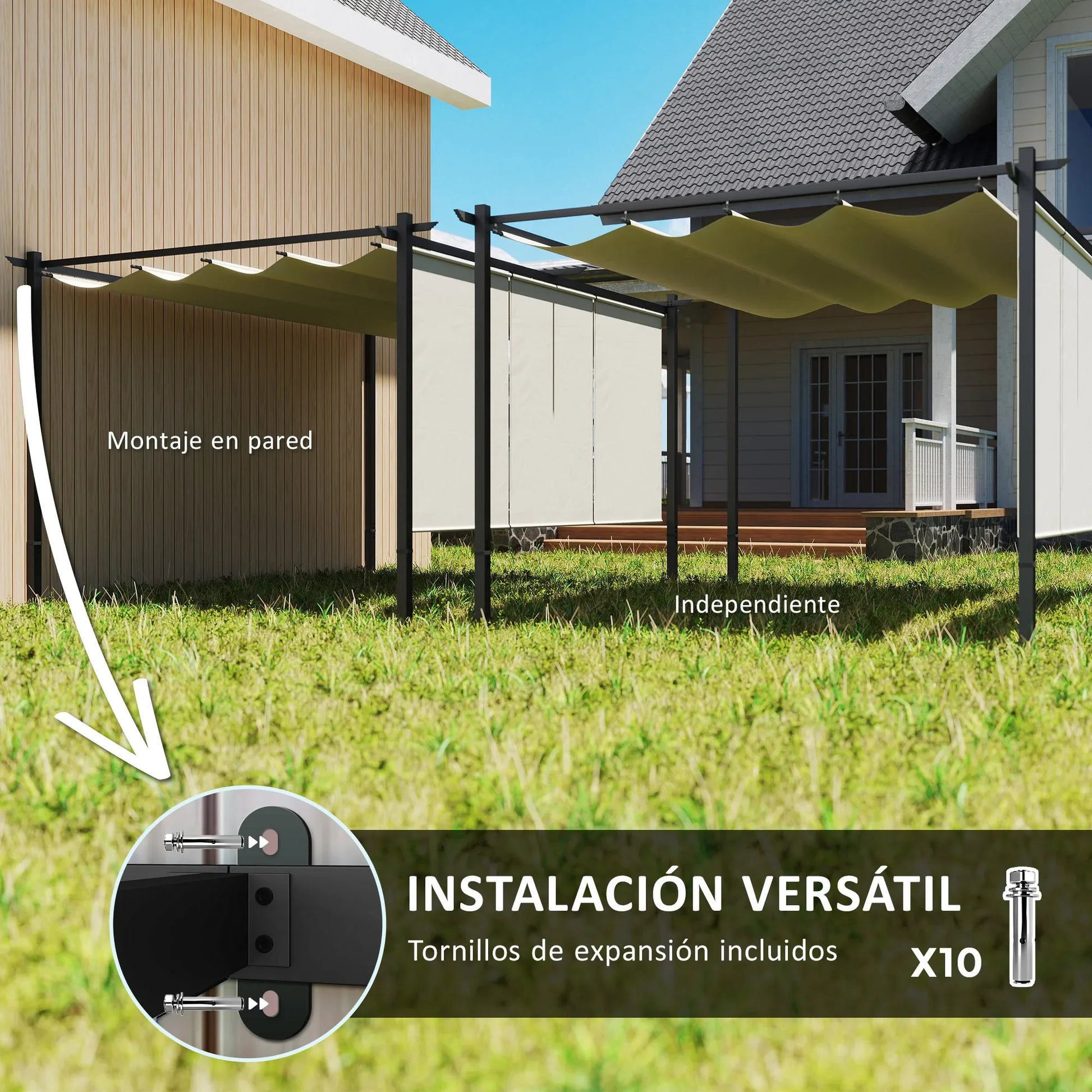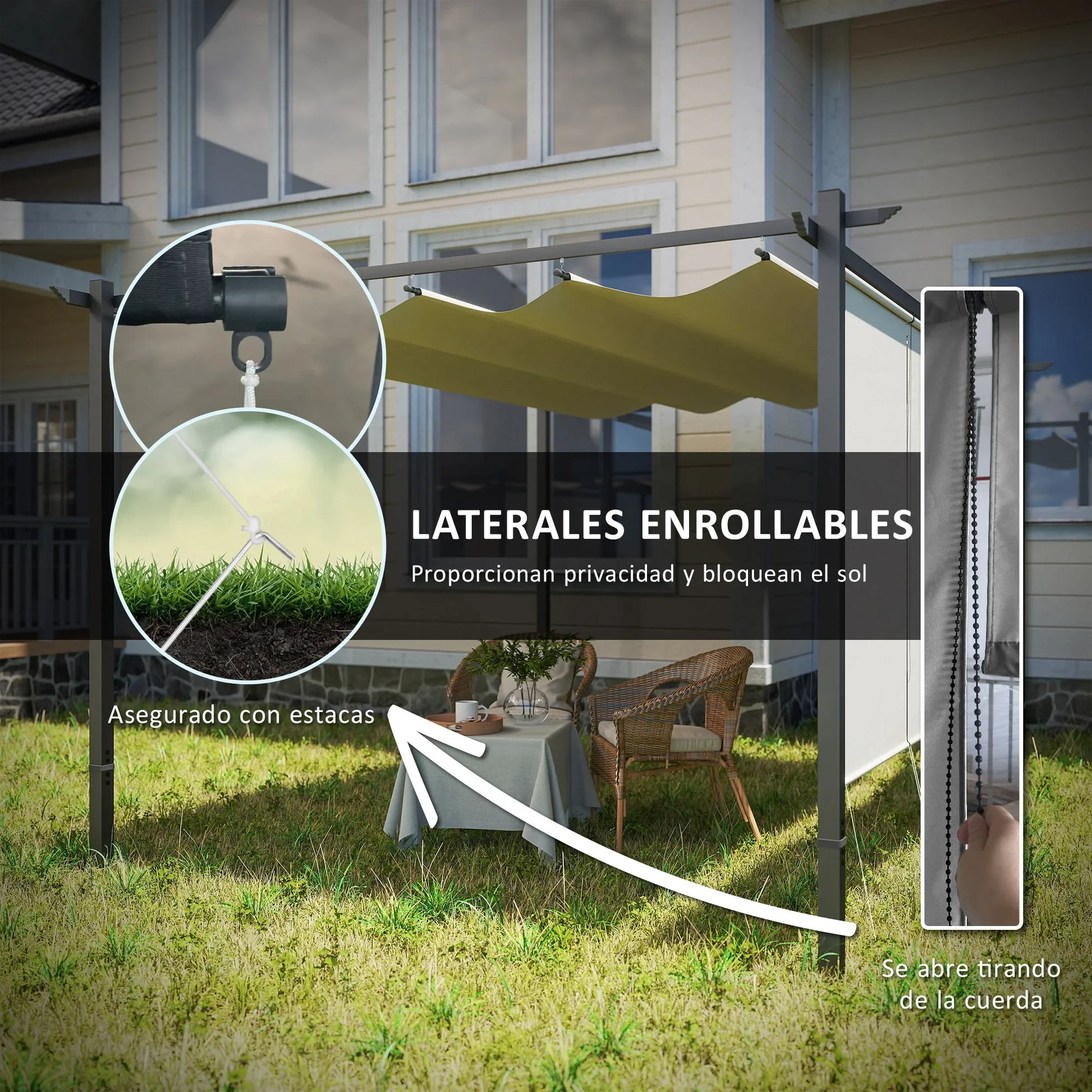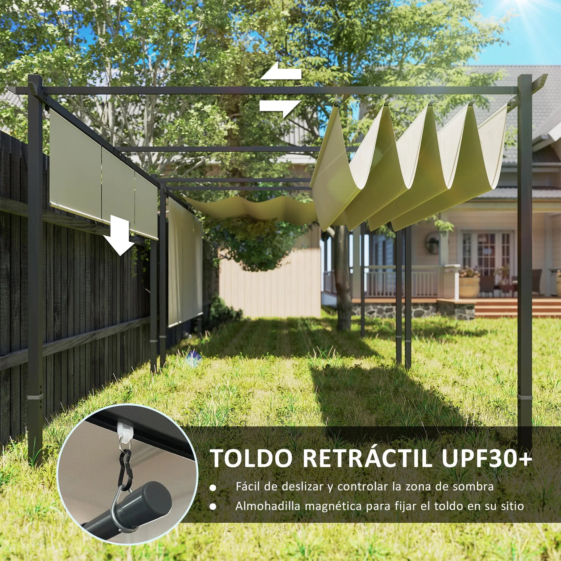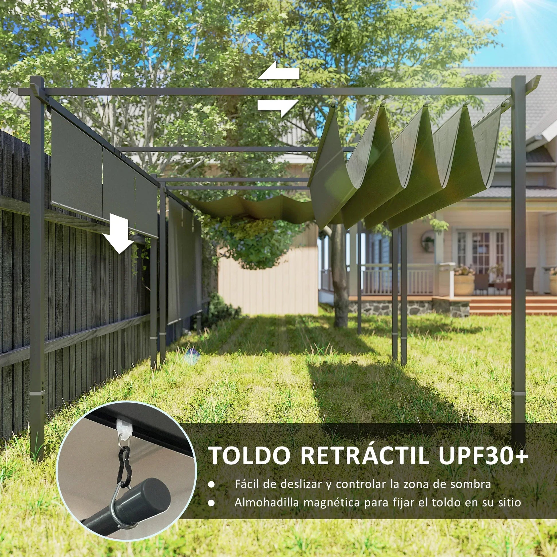 Pérgola Outsunny 4x3 m con techo retráctil y cortinas laterales enrollables – Gris