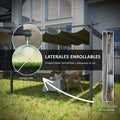La tecnología deslizante permite controlar fácilmente la exposición al sol, mientras que las pantallas laterales grises ofrecen protección adicional contra el viento o la luz solar baja. Su robusta estructura metálica garantiza estabilidad y durabilidad incluso durante un uso prolongado.