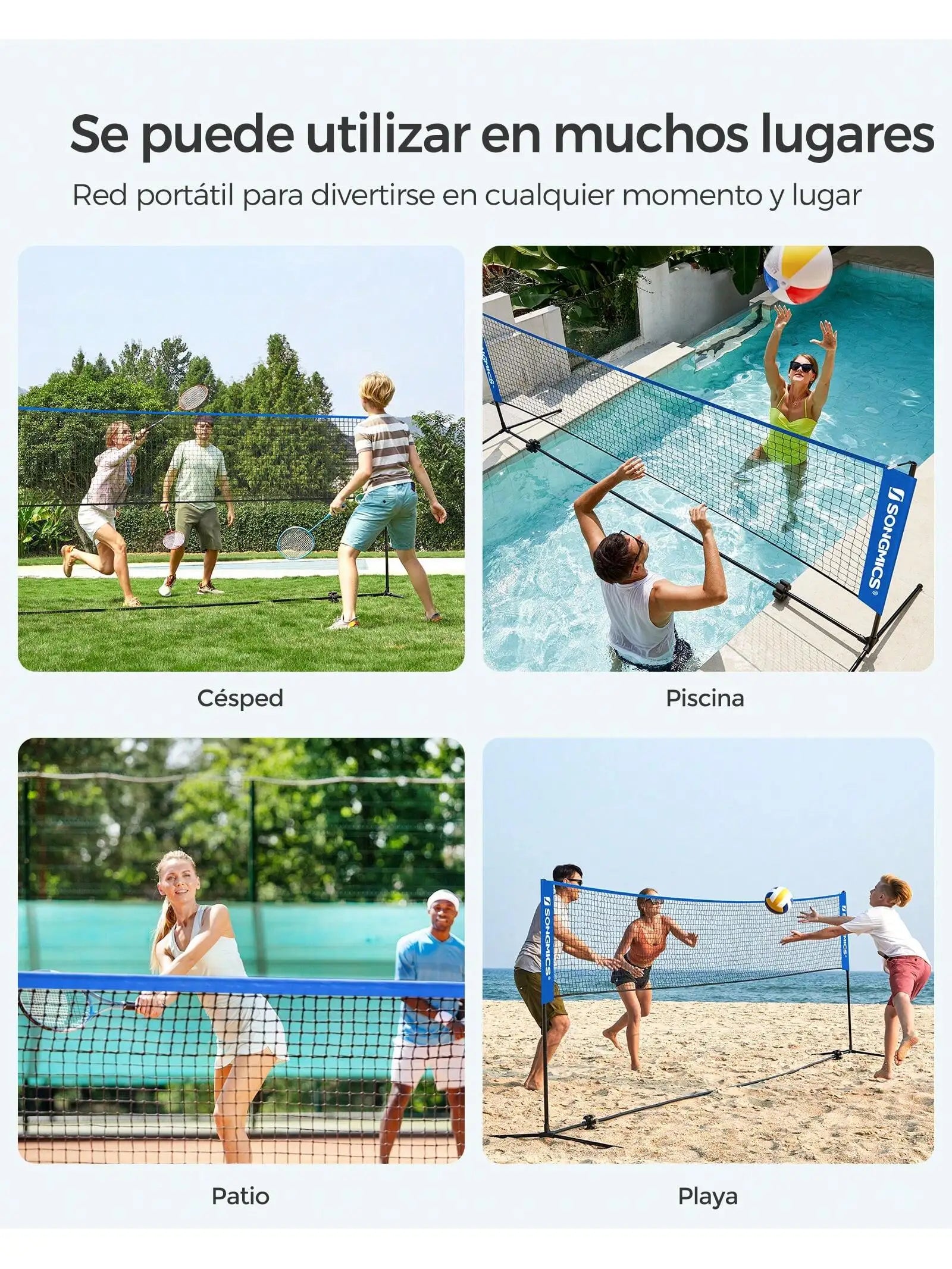 Juega donde quieras y como quieras con esta red portátil de SONGMICS. Ideal para bádminton, vóley playa y tenis juvenil, se adapta a diferentes alturas y ofrece estabilidad y resistencia para disfrutar en cualquier lugar.
