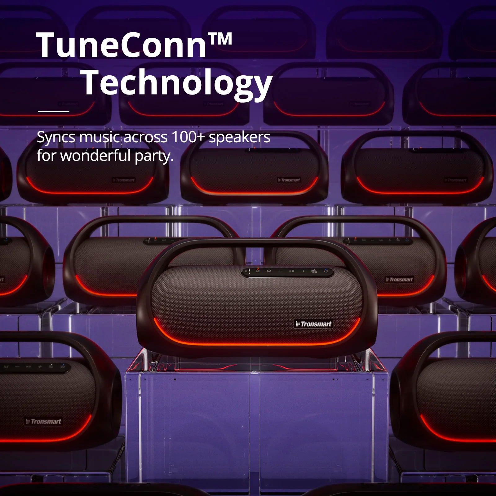 - 🎶 Tecnología TuneConn™: Sincroniza hasta 100+ altavoces a la vez